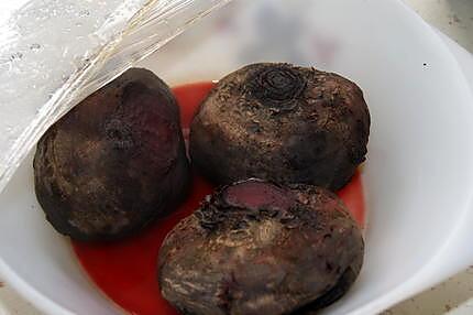 Lavez soigneusement les betteraves pour enlever toute la terre restante. Coupe de la betterave mis dans un four à micro-ondes et au four à une puissance maximale de 10-15 minutes. La betterave doit être ferme mais pas dur ni molle.
